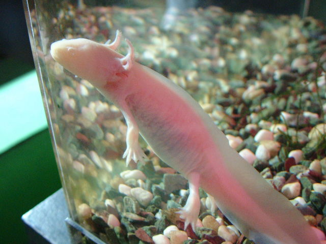 アルコール漬けではありません。^^; (アホロートル(ウーパールーパー)・江ノ島水族館) |