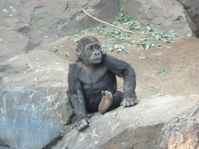 うむ、世は満足じゃ! (上野動物園の仔ゴリラ「もも太郎」です) (ニシローランドゴリラ ・ 上野動物園) |