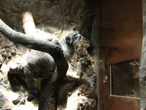マヌルネコ(まぬる猫、英名Pallas's CatまたはManul、学名Felis manulまたはOtocolobus manul)は ずんぐりとした体が特徴の食肉目ネコ科の動物の一種です。 マヌルとはモンゴル語で「小さいヤマネコ」の意味で、モウコヤマネコという別名があります。 ネコ科の動物の中では最も古い種で、絶滅種であるFelis lunensis (Martelli's Cat) と共に Pseudaelurus属から約1500万年前に分岐した最初の2種のうちの1種であると考えられています。 体毛が長く密集して生えているので丸々と太った立派な体型に見えます。 この厚い毛のおかげで、雪の上や凍った地面の上に腹ばいになったとき体を冷やさずにすむのです。 主に単独で行動し、繁殖期を除けば他の個体と出会うことは稀です。 昼間は、岩の割れ目、岩穴、マーモットなどの掘った穴などに潜み、夜になると活動をはじめます。 脚はあまり速くないので主に待ち伏せ、尾行による狩りを行います。 その際、身を隠すのに背の低い植物や岩の多い地形を使います。 感染症による死亡率が高く、飼育下での繁殖は困難な動物です。 生息地が高地のため病原菌が少なく、免疫力が低い為だと考えられています。 ヤマネコは毛皮として珍重されるうえ、生息地が減っているために、急激に数が減っています。 準絶滅危惧(NT)です。 |