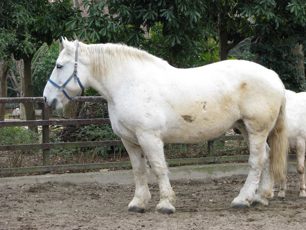 馬の一品種です。 フランス、パリ西方のペルシュ地方の原産で、体はがっしりとし、輓馬(ばんば・荷を引くための 品種)として世界中に普及しています。 自動車が普及するまでは、馬車を引く大型の馬として活躍していました。 毛色は青毛、芦毛等が多く、体型はサラブレッドに比べ足が短く、胴が太いです。 体高(肩までの高さ)は160-170cmで大きなものでは2mを超えます。体重は1トンにもなりサラブレッドの 倍ほどにもなります。性格は大人しく従順ですが、力持ちです。その強い力を生かし、馬車馬、挽馬、 ショーなどに使われます。かつては軍馬として、全身甲冑を着こんだ重装騎兵の乗馬や、大砲の牽引 などに用いられました。 日本では主に北海道で導入されて、ばんえい競馬にも使われ、初の1億円馬キンタローも ペルシュロンの影響を強く受けています。 記録に残る最大の馬はドクトゥール・ル・ジェアという牡馬で、体高211cm、体重1,370kgにもなりました。 |
