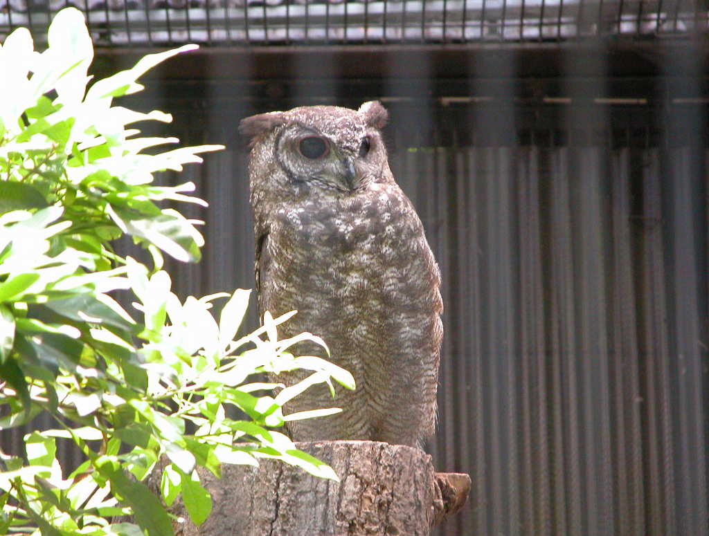 サバンナ、オアシス、森林などに生息しています。 ワシミミズク属の中では小型です。体は全体的に灰色または茶色で、胸部から腹部にかけては縞模様 があります。頭部に耳状の飾り羽(羽角)を持ち、目の色は鮮やかな黄色、クチバシは黒く、脚と爪は あまり大きくありません。通常足の指は前に2本後ろに2本ですが、多少前後に動く為、状況により前3本 後ろ1本に見えることもあります。 英名のように茶褐色地に薄い斑点が目立ちます。他のワシミミズク類より赤褐色が強いです。 |
