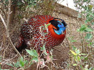 前掛けのような「肉垂れ」を広げてメスに求愛します。