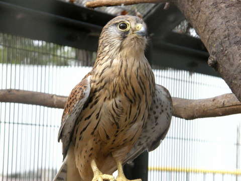 農耕地、原野、川原、干拓地、丘陵地帯、山林などの低地、低山帯から高山帯までの広い範囲に生息 しています。単独か番(つがい)で生活します。 近年、市街地でもよく見かけるようになりました。これは、獲物となる小鳥類が豊富なこと、天敵が少ない こと、ビルなどの構築物がねぐらや繁殖場である断崖の代わりになっていることなどが理由だと思われ ます。 翼の先がとがっていて、ほかのハヤブサ類より尾が長いです。オスは頭と尾が灰色、メスは上の面が赤茶色 で、全身に黒い細かい模様が散りばめられています。 素早く羽ばたいて、体を斜めにしながら空中でホバリングを行った後に急降下して地上で獲物を捕らえること が多いのが特徴です。ハヤブサ類ですが、飛ぶ速度はあまり速くはありません。 視力は紫外線を識別することが可能で、この能力は主食である齧歯類の尿が反射する紫外線を捕捉し、 捕食を容易にしていると推測されます。ハヤブサと異なり、捕らえた獲物は周囲が安全ならばその場で食べ ます。 繁殖期に空中でオスとメスが絡み合い、地面まで落下し、メスを地面に押さえ付け、二羽でバタバタと羽ばた く交尾かディスプレイを行うことがあります。 日本では4〜5月に断崖の横穴や岩棚、樹洞などに小枝を作って営巣するか直接卵を産みます。カラス類の 古巣を流用することもあります。産卵数は4〜6個で、抱卵日数は27〜29日、主にメスが抱卵します。ヒナは 27〜32日で巣立ちますが、親から独立するにはさらに1ヶ月以上かかります。1年で成熟します。 長野県中野市の十三崖(じゅうさんがけ)で集団繁殖しており、国の天然記念物に指定されています。 しかし、近年は繁殖する番(つがい)の数が大幅に減少しています。 |