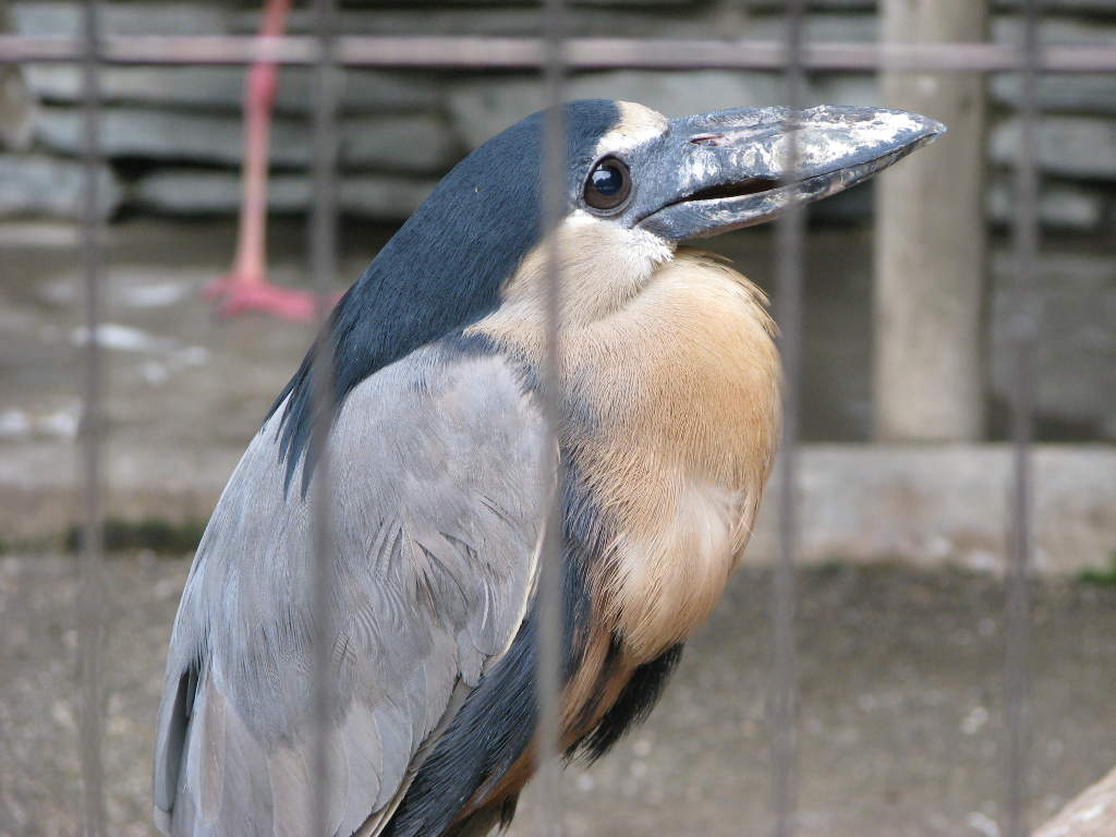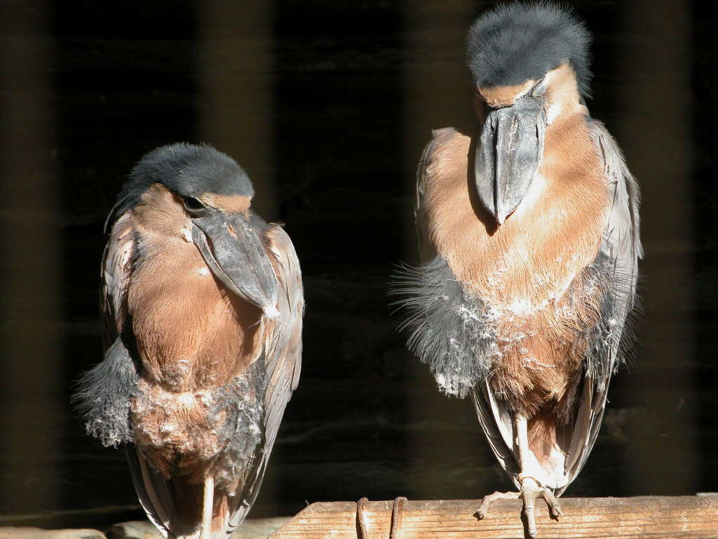 熱帯雨林やマングローブ林の水辺に生息しています。 習性は夜行性で,昼間は休み,夕方出て,湿地や水辺で餌をあさります。 一見ゴイサギに似ていますが、幅の広いクチバシが特徴です。 このクチバシは、サギ科の中でも例外的に幅が広く、顔と比べるとかなり大きいです。 ディスプレイの時に、このクチバシを「カッ、カッ、カッ」と打ち鳴らします。 エサを食べる時には「クアッ、クアッ、クアッ」とカエルのような声で鳴きます。 顔は灰色がかった白色で、頭頂部は黒色、後頭部には黒く長い冠羽があり、背中まで伸びています。 体の上面は青みがかった灰色で、胸や腹部は淡い褐色です。クチバシは黒色で脚は灰色です。 番(つがい)か小さなコロニーを形成して繁殖し、2〜4個の卵を産みます。抱卵期間は25〜35日で、 オスメスともに抱卵します。 |