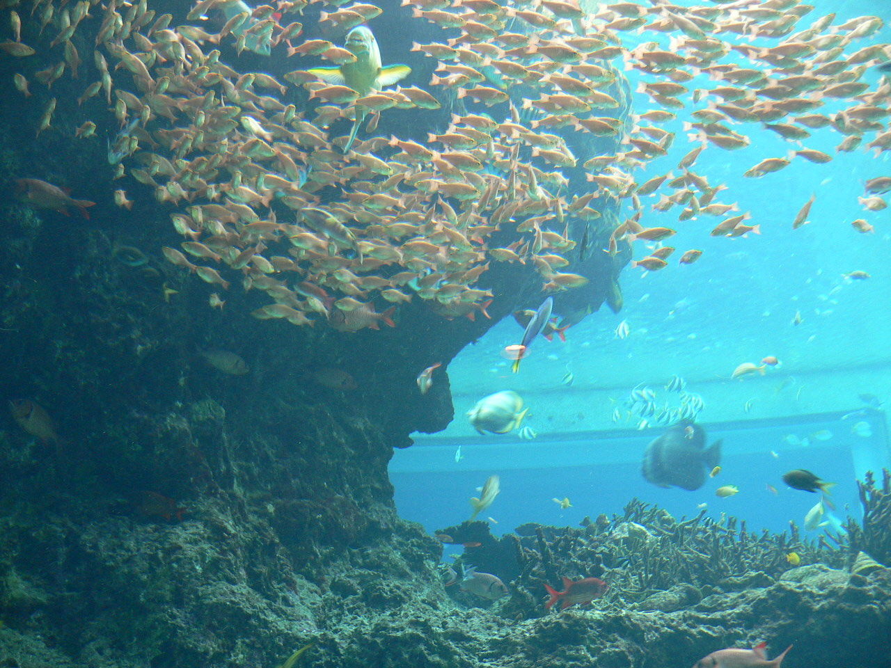 美ら海といえばこれです! そう、ジンベイザメです。 巨大です。 う〜ん、口の中に入ってみたい。(笑) |