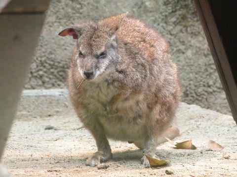 草や低い木の葉を食べる小型のワラビーです。 夜行性です。 他の大陸から持ち込まれたキツネなどに捕食され、 今ではニュー・サウス・ウエールズ州の北東部に生息するのみに なってしまいました。 準絶滅危惧種です。 |