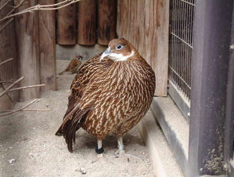 ヒマラヤ山系の、岩の多い斜面にある開けた林に生息し、単独か番(つがい)、あるいは3〜4羽ほどの 小さな群れで生活しています。 オスは最も美しいキジのひとつで、陽の光を浴びると、光沢がかって輝いて見えます。 オスは金属光沢のあるビロード状の豪奢な羽毛と、先端が葉の形に広がった直立する冠羽を持ちます。 対してメスは、冠羽はなく、褐色に斑模様でオスよりもかなり地味です。 オスメスともに目の周囲は空色をしています。 オスは繁殖期、翼や尾を広げて美しい羽を誇示するディスプレイでメスを惹きつけます。 岩陰や草地などの陰を足で掘って浅い窪みを作り、それを巣として産卵します。 姿が美しいために狩猟の対象とされ、野生での生息数が少なくなってきています。 ワシントン条約附属書Iに記載され、国際取引は厳しく制限されています。 中国国家一級重点保護野生動物に指定されています。 ネパールの国鳥です。 |